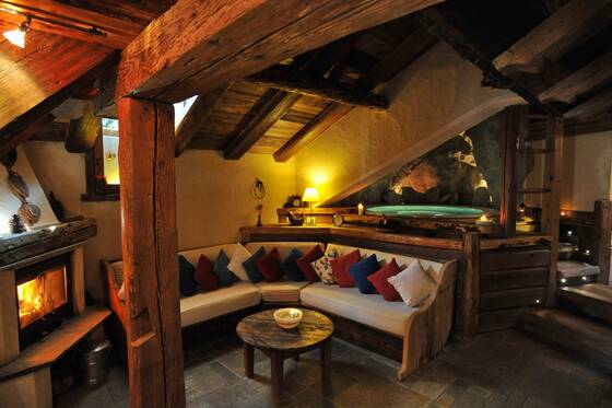 Situé au dernier étage de l'historique Hôtel Du Grand Paradis, l'atmosphère du Spa La Baita rappelle celle d'un chalet typiquement valdôtain, avec son coin relax sur la mezzanine, cheminée, lumières tamisées et la mini-piscine avec hydromassage qui avec son bord en pierre évoque un lac alpin. Laissez-vous entourer par la tiédeur de sauna et hammam, relaxez-vous sous les jets aromatiques de la douche émotionnelle ou sirotez une bonne tisane bénéfique.