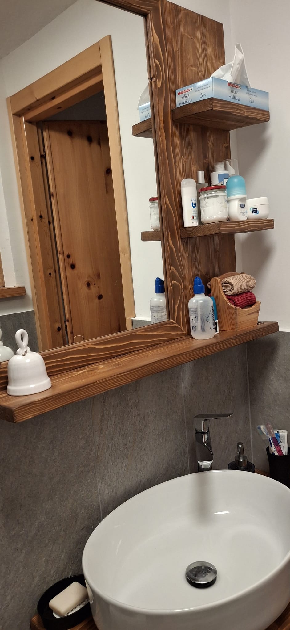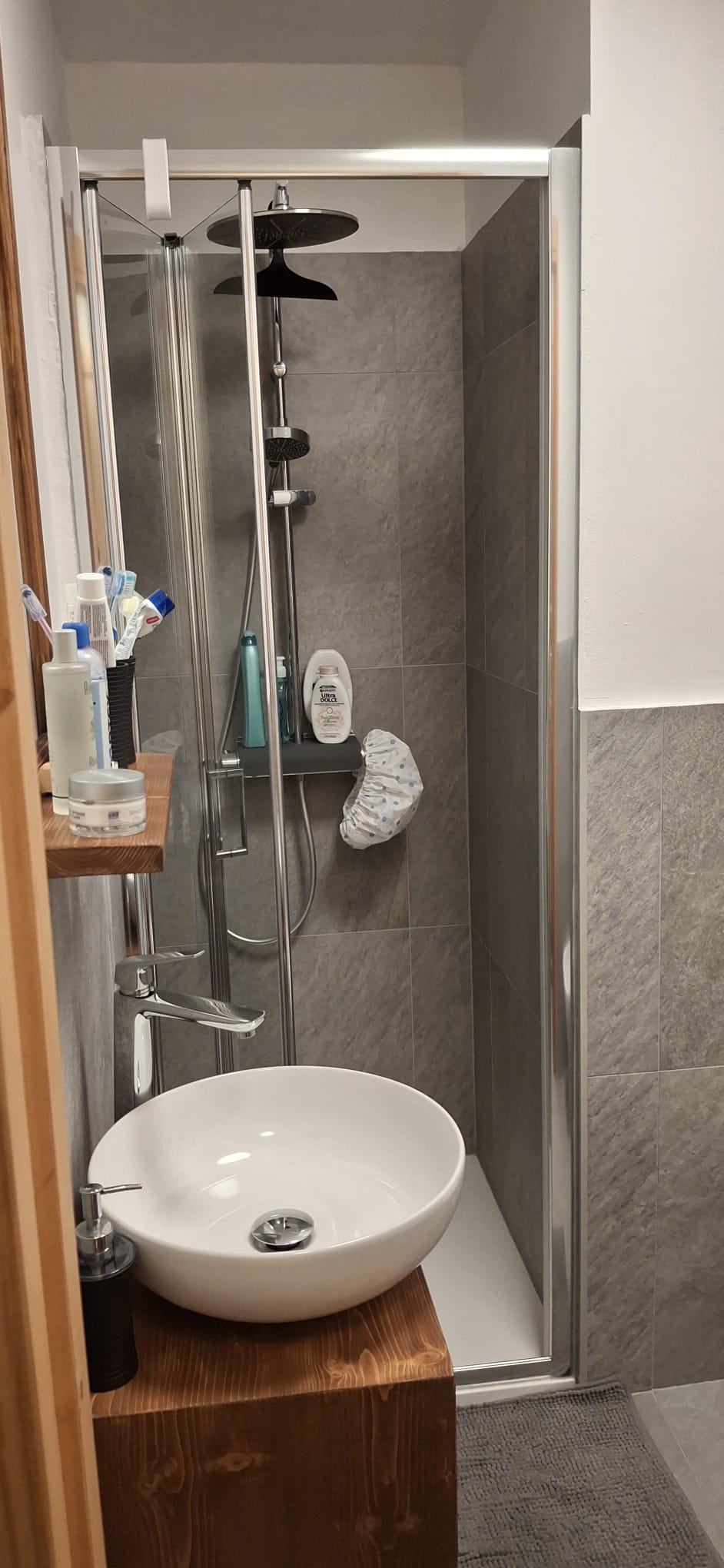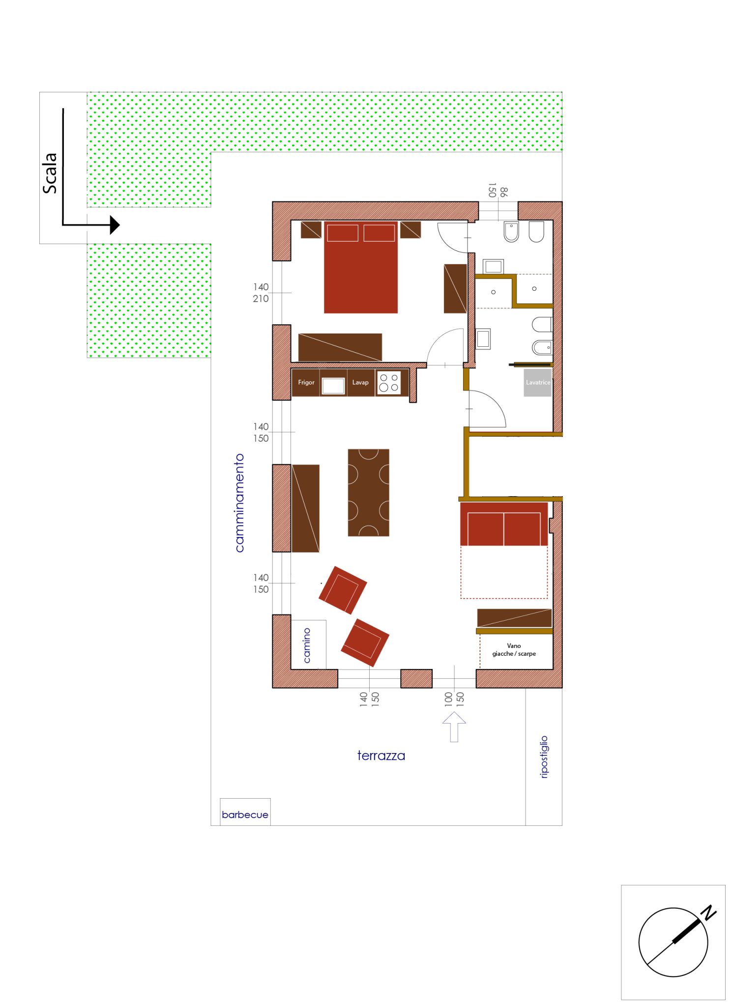L’accès à l'appartement se fait par un escalier d'une dizaine de marches, qui relie la route à un petit pré et ensuite à la terrasse.