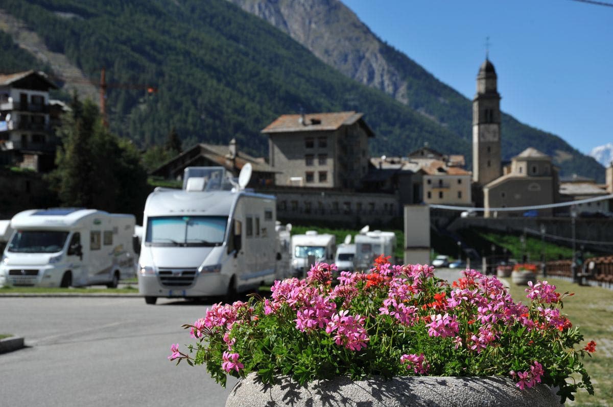 L'aire de stationnement au cœur de Cogne