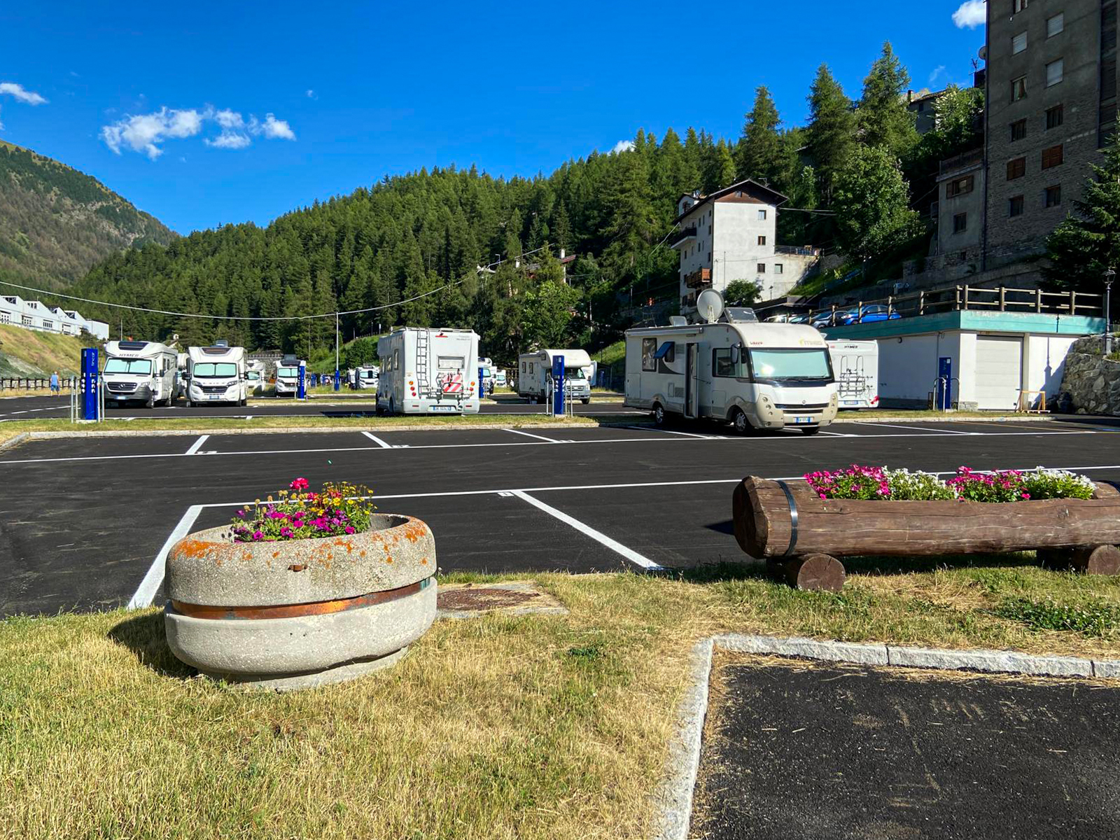 L'aire de stationnement au cœur de Cogne