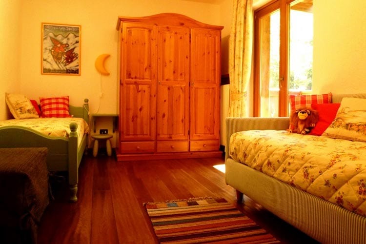 Le logement possède deux chambres : une grande chambre et une chambre avec deux lits simples. Les deux chambres sont spacieuses et très lumineuses, avec de grandes armoires. La grande chambre donne sur la terrasse panoramique ; la petite chambre sur une petite terrasse avec vue sur le bois.