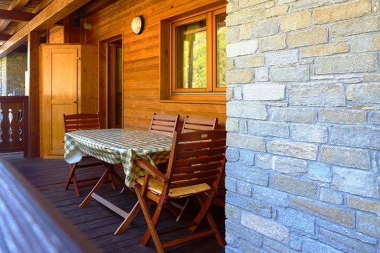 La pièce donne sur une grande terrasse panoramique, avec une vue sur le Grand Paradis, et où il est possible de déjeuner et de prendre le soleil en été.