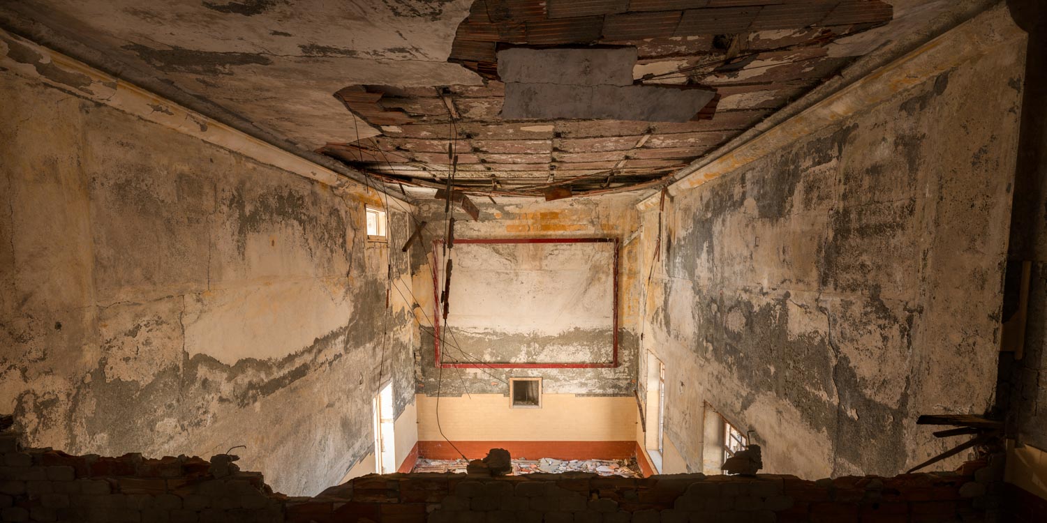 La sala Cinema. Il villaggio minatori era per l’epoca una struttura all’avanguardia, con la Chiesa, il campo da bocce, la mensa e persino uno dei primi apparecchi di radiografia nell’infermeria.